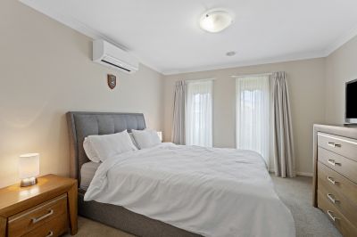 This quality home features 3 bedrooms, the main is situated at the front of the house off the lounge room and has its own 3 piece ensuite, walk in robe and split system. The other 2 bedrooms with built in robes are located at the back of the house along with the bathroom, toilet and laundry.There is a spacious kitchen, meals, family area with ceiling fan and the kitchen has a walk in pantry, gas cooktop, electric oven and dishwasher. For all year round comfort there is ducted heating and ducted cooling throughout the home.