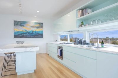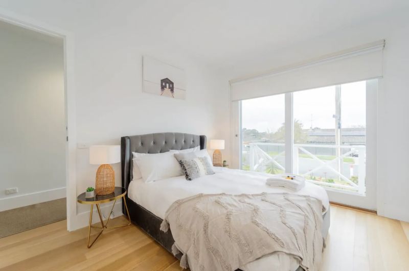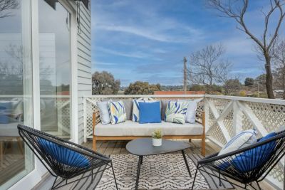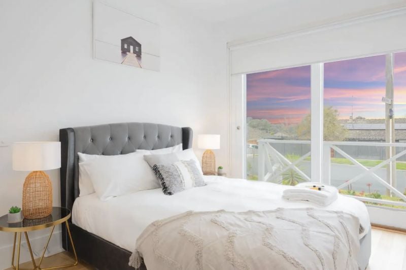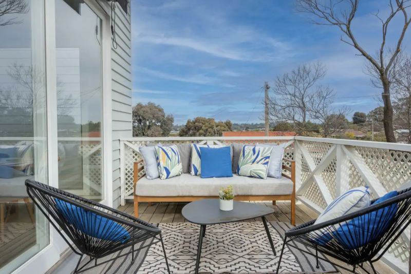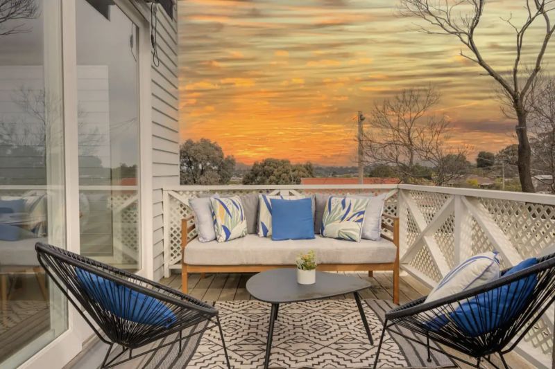 The heart of the home is the open-plan kitchen, living, and dining area. The kitchen is a chef's dream, boasting a huge stone island bench with an integrated fridge/freezer and views overlooking the beautiful city of Bendigo. The living area opens to a private elevated deck, featuring an automated awning for added protection and enjoyment of the view.