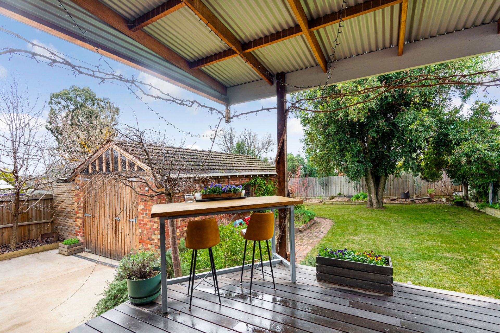 This property has two good size bedrooms with built in robes, ceiling fans and in the main a split system and a smaller third bedroom or study. Open living area with timber floor boards, ducted floor heating, split system and beautiful ornamental fireplace. The kitchen is well equipped with gas cooktop, electric oven, dishwasher and corner pantry. Bathroom with vanity, bath and shower and separate toilet off the laundry. Outside has a lovely undercover decked entertaining area, brick shed, carport and large backyard.