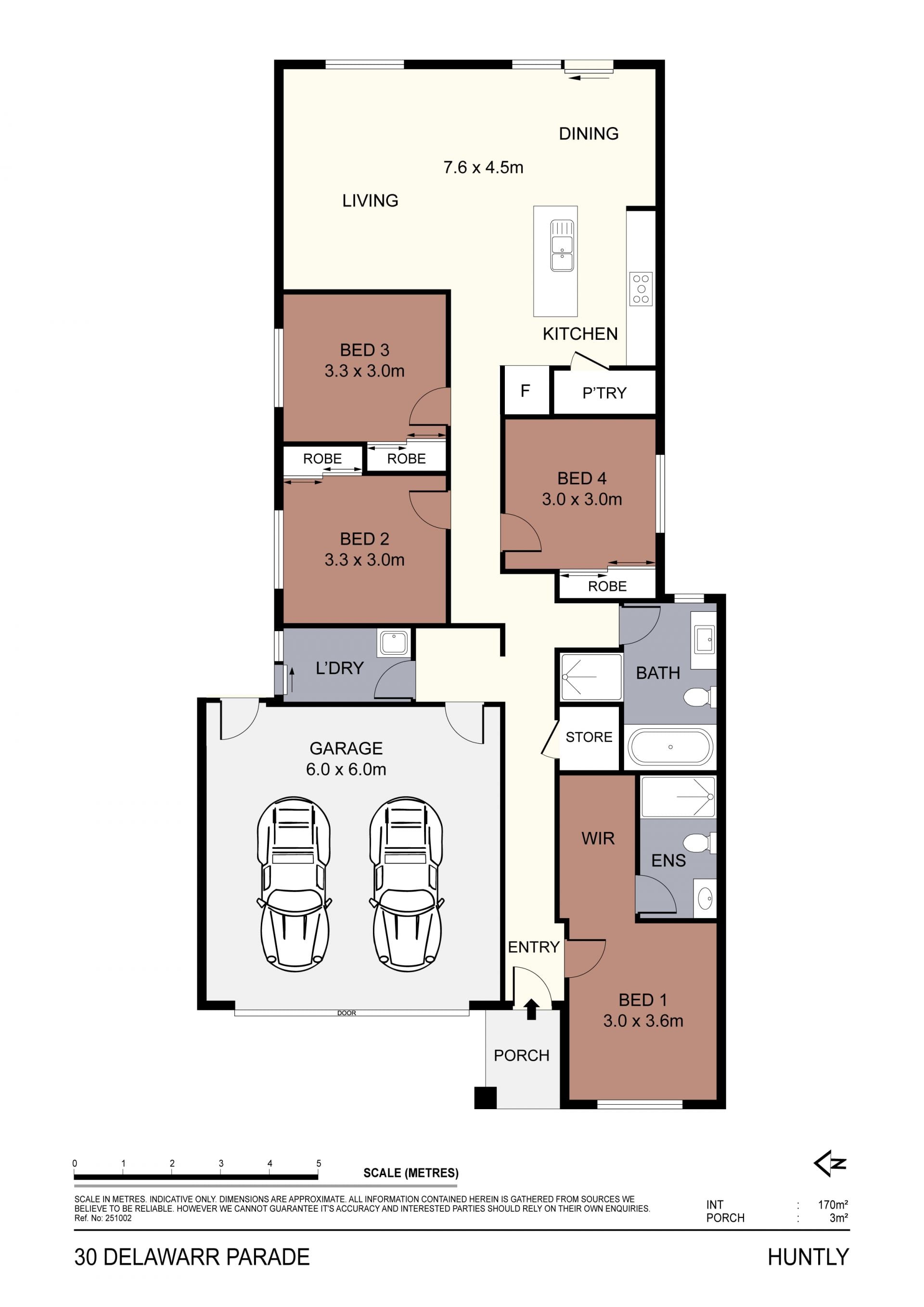 Enjoy year-round comfort with ducted heating and evaporative cooling throughout the home. The main bedroom features a generous walk-in robe and a private ensuite, while the additional three bedrooms offer ample space for family or guests. The main bathroom is equipped with a full-size bath and a separate shower for added convenience. A large laundry provides practicality, and the double garage ensures plenty of room for vehicles and storage. Step outside to a landscaped and enclosed backyard, ideal for relaxing or entertaining.