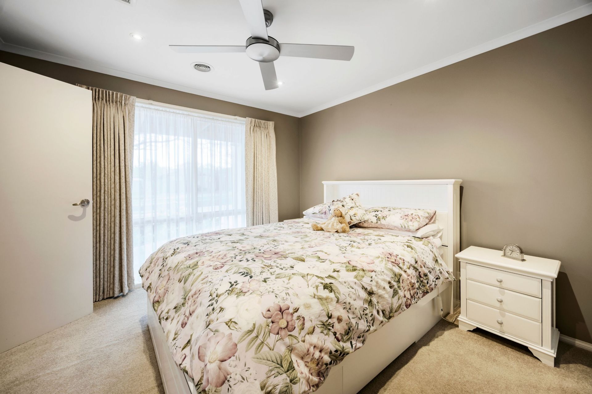 The master suite features double doors, a walk-in wardrobe, and a light-filled ensuite, while three additional bedrooms share a family bathroom and separate toilet. A large, functional laundry completes the home's practical design.