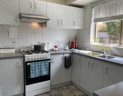 Spacious kitchen with gas cooking, corner pantry and plenty of bench space. Separate dining area and large lounge room.