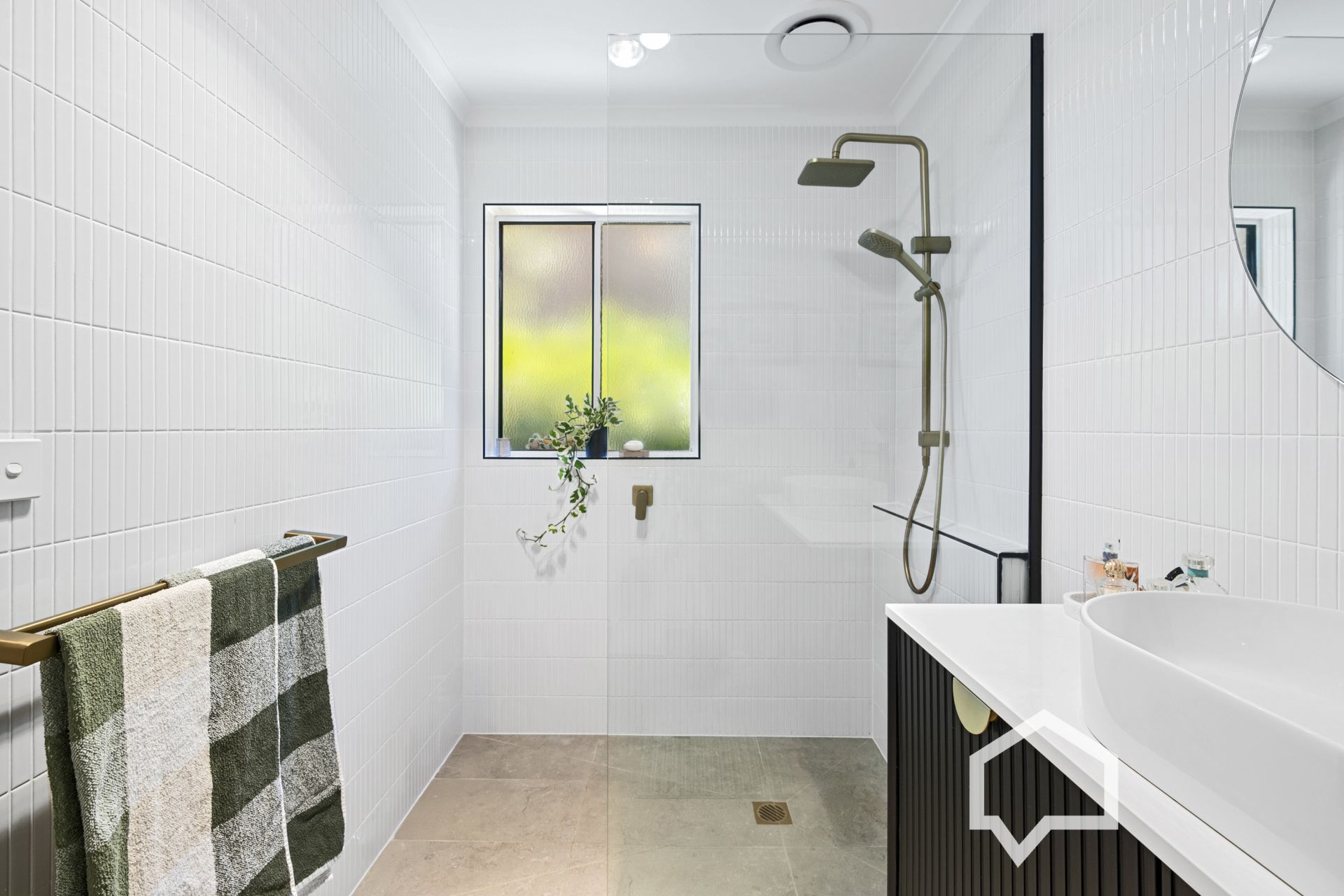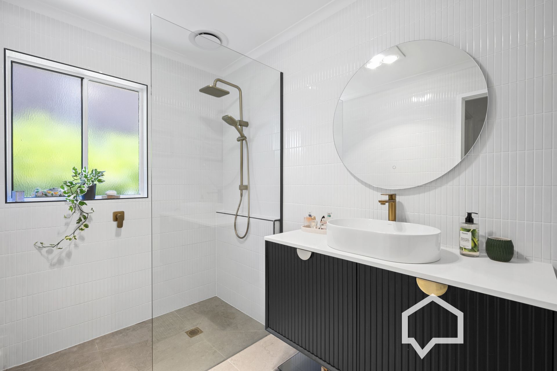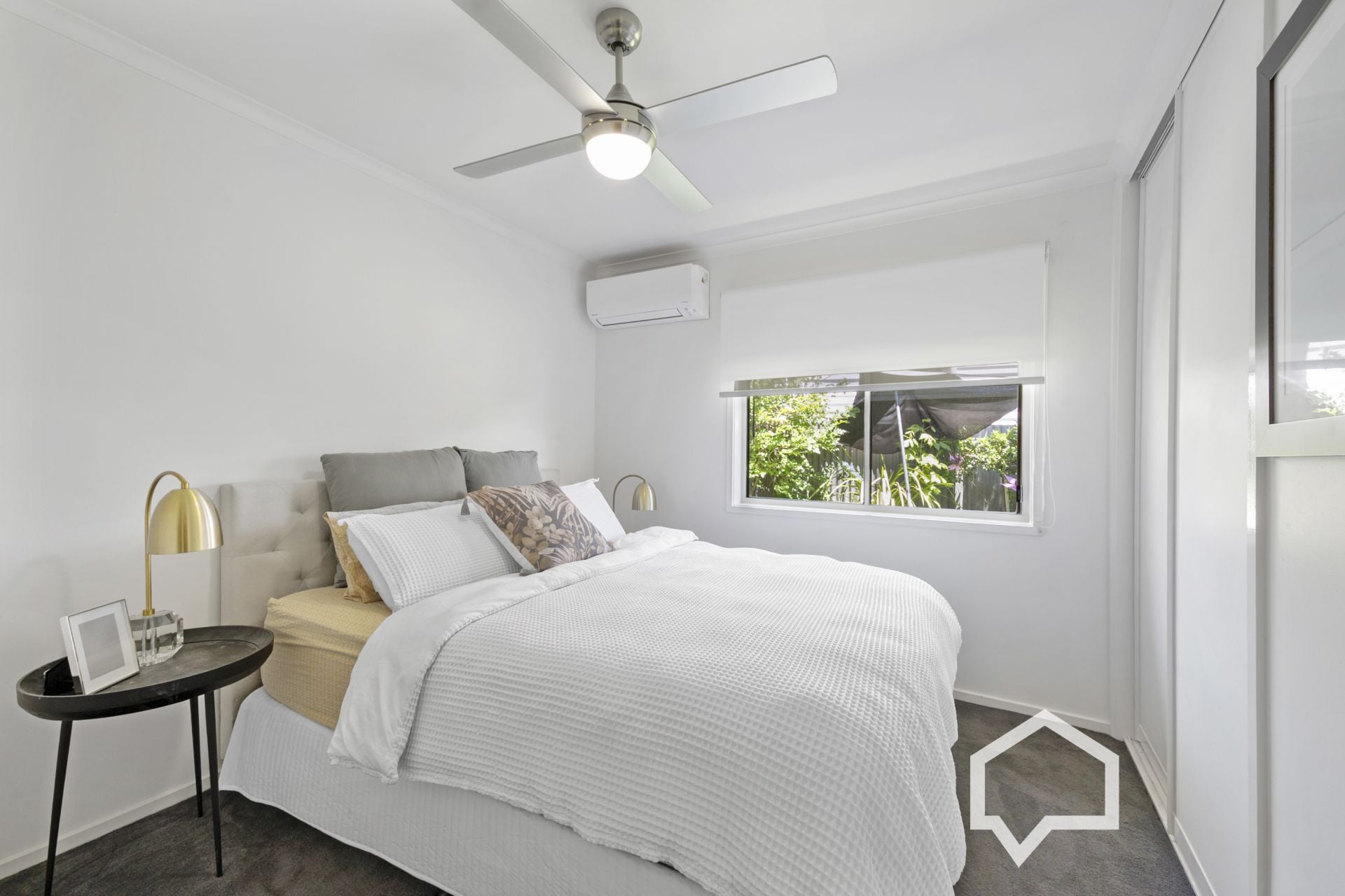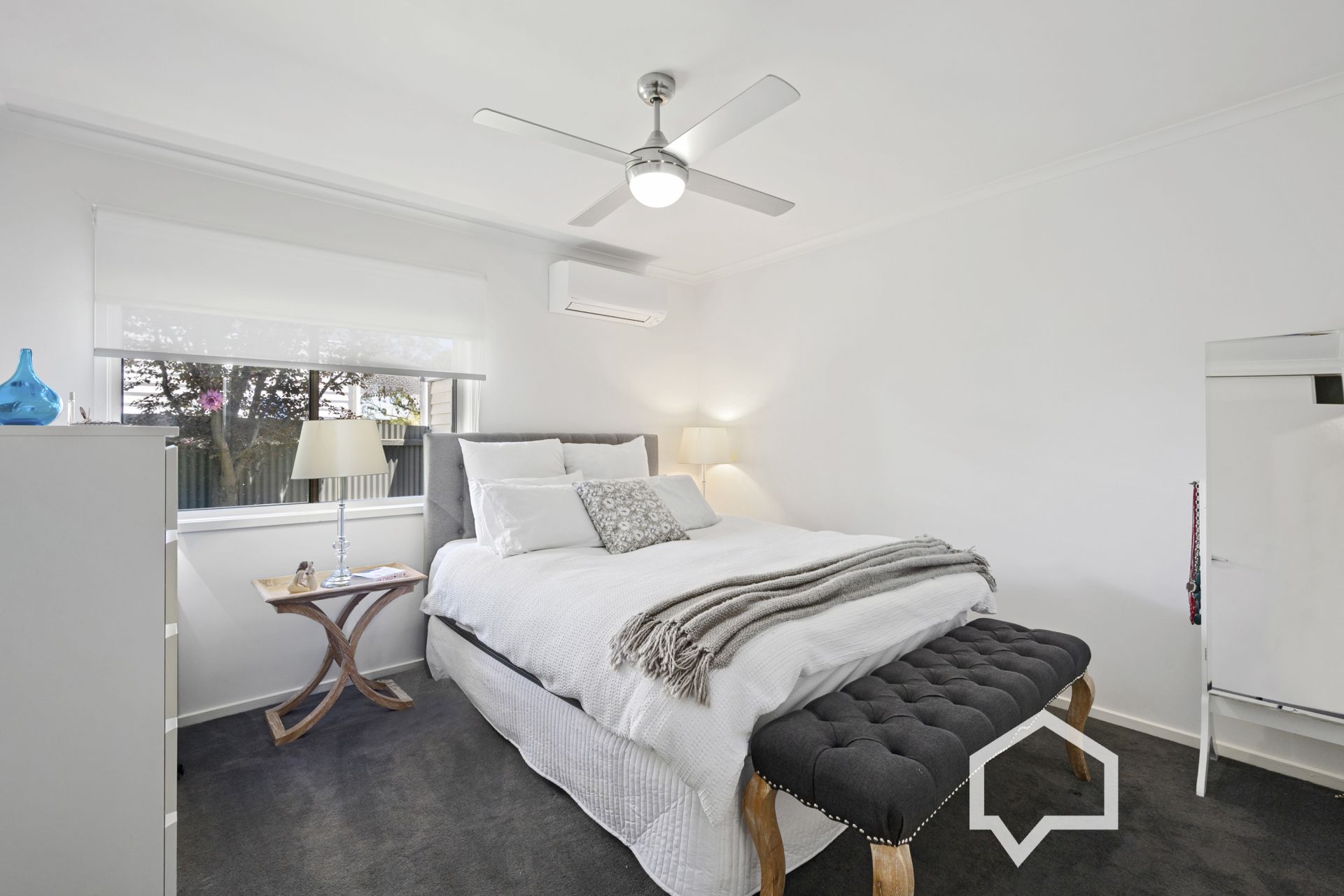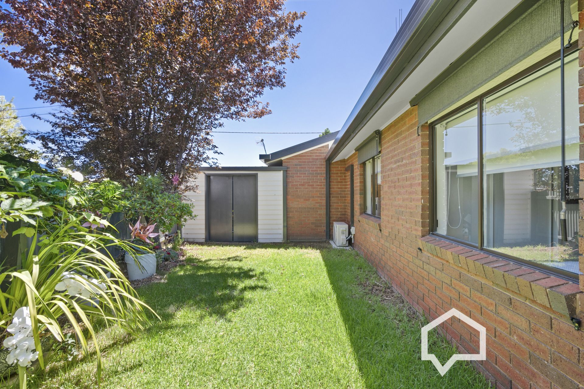 The main bedroom includes built-in robes, a split system air conditioner, and a ceiling fan. The sleek new bathroom is central to all bedrooms and contains a walk-in shower, a large vanity unit and full-wall tiling. The laundry includes a closet and external access to the side garden with a private, sun-drenched paved spot for enjoying a quiet morning coffee or alfresco dining.