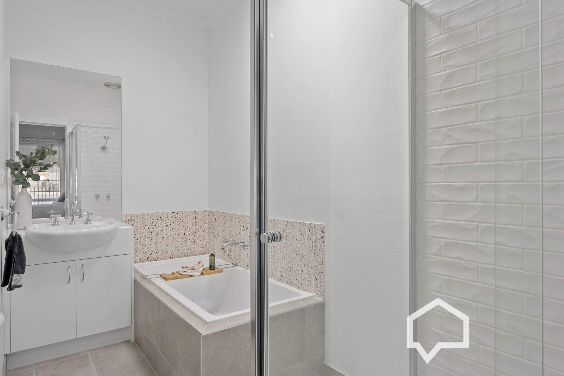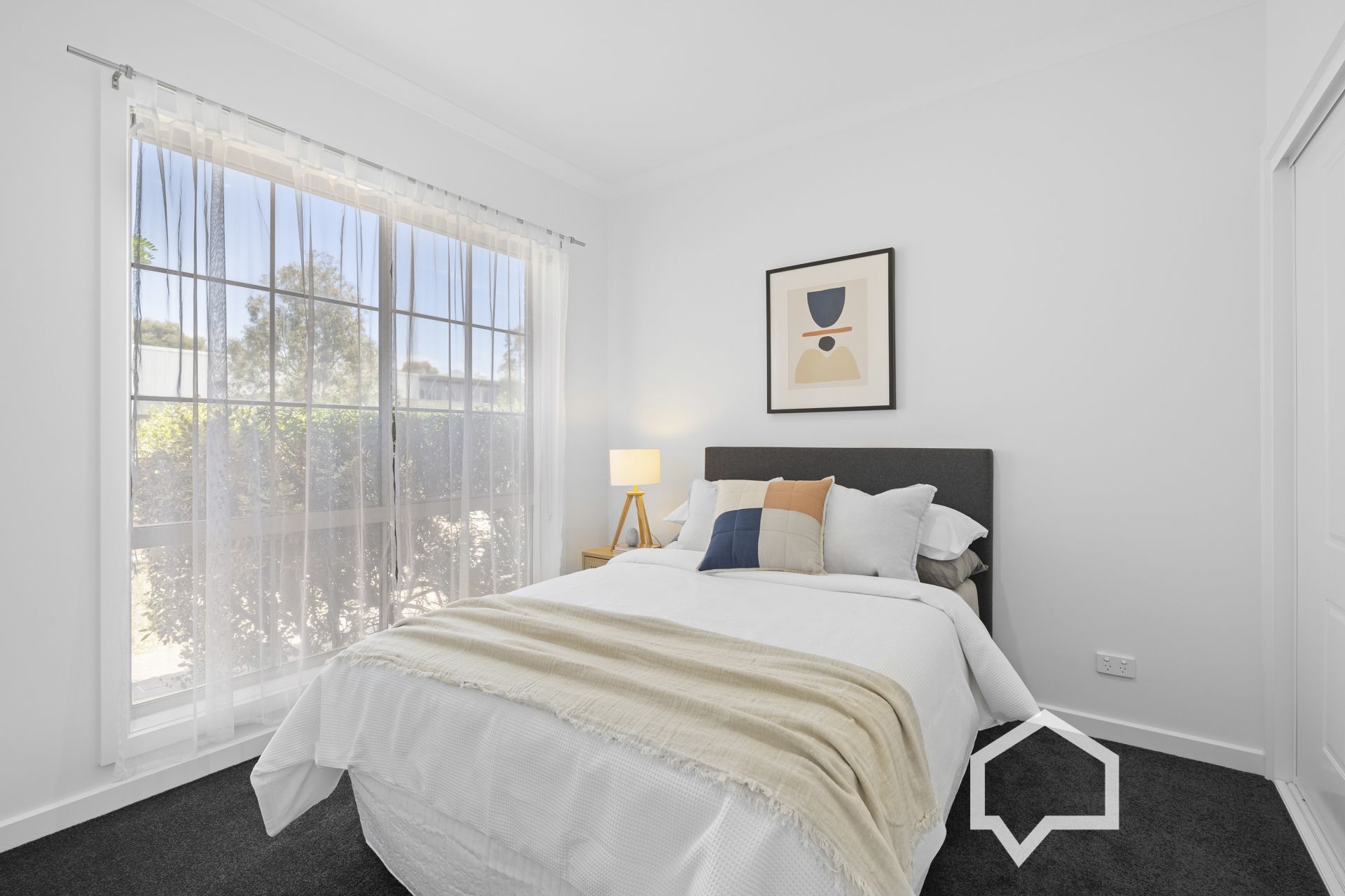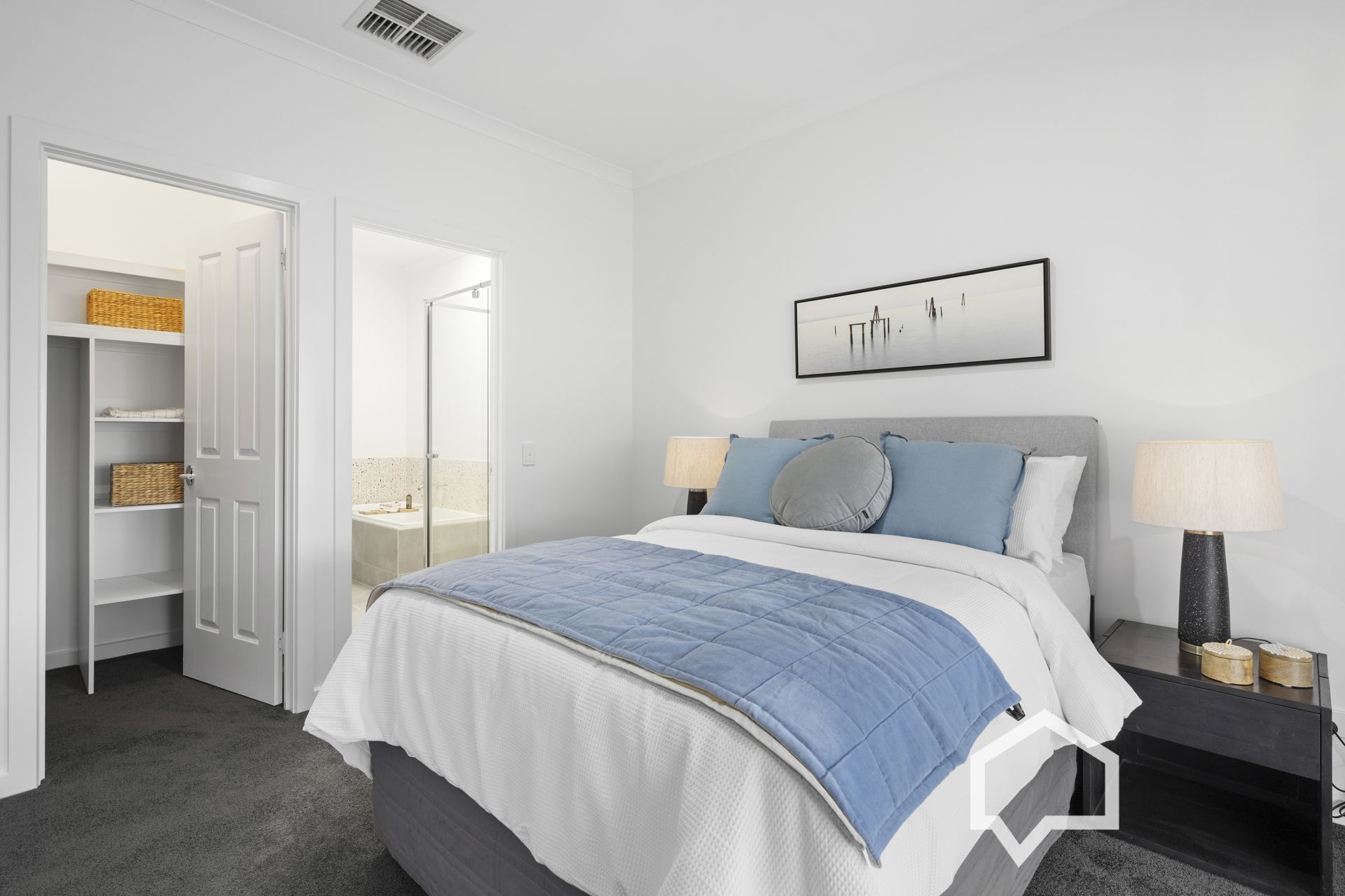 The main bedroom enjoys a walk-in robe and direct access to the two-way bathroom.