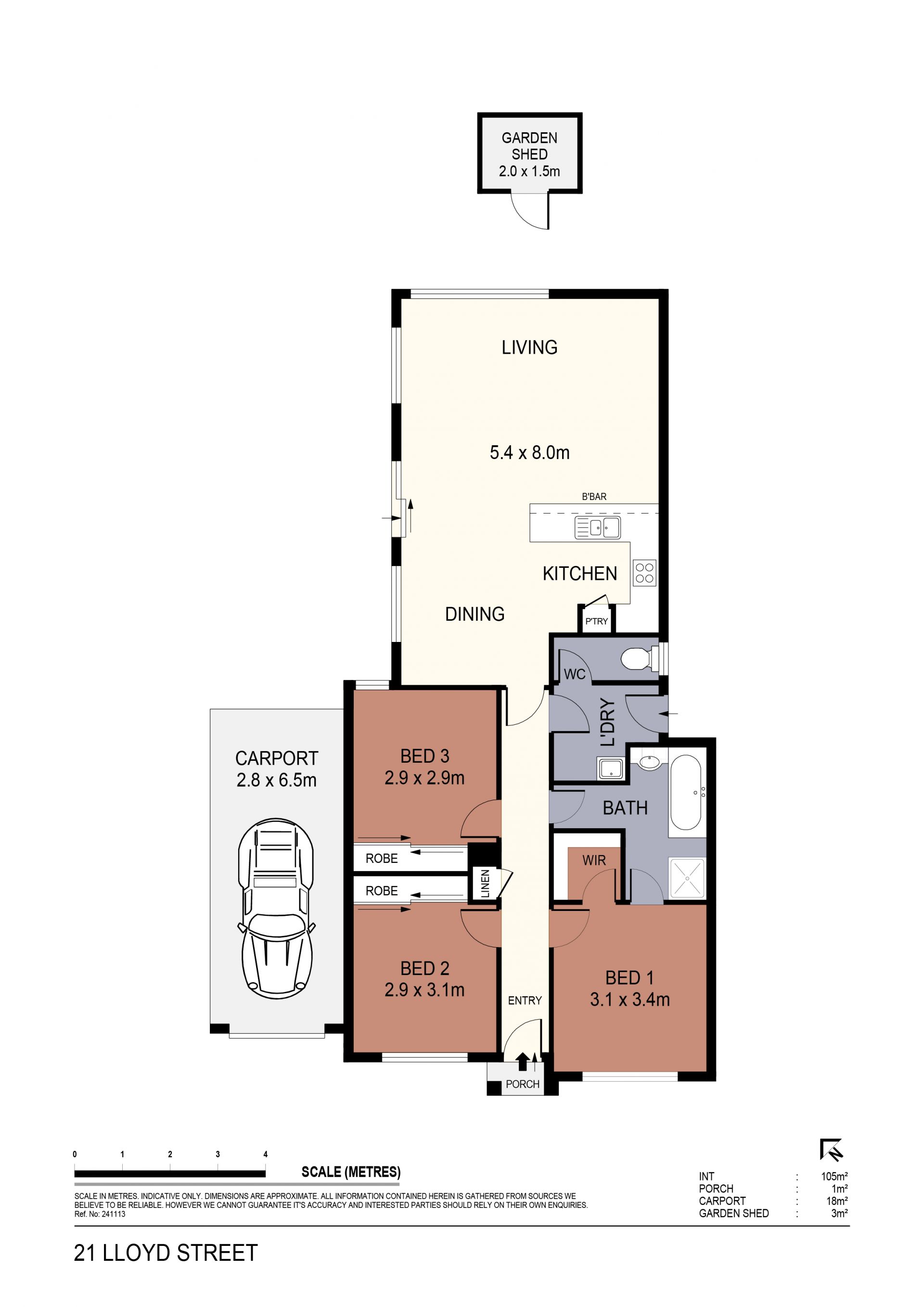 Creature comforts include fresh monotone paintwork, new carpet and vinyl plank floor coverings, an updated bathroom, ducted heating and cooling, fuss-free window coverings, a garden shed and a single lock-up carport with roller door.