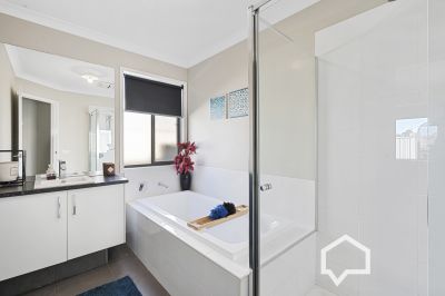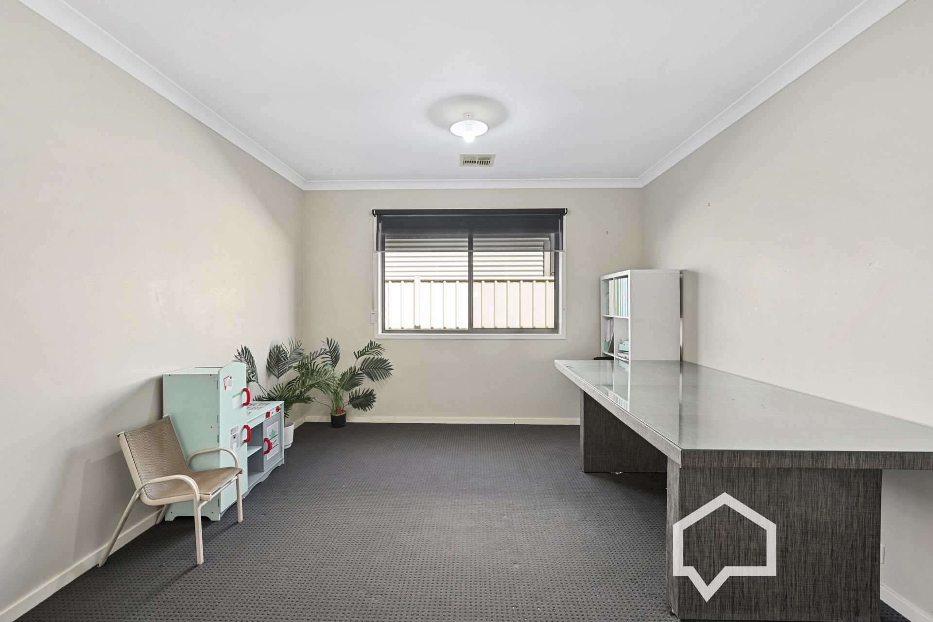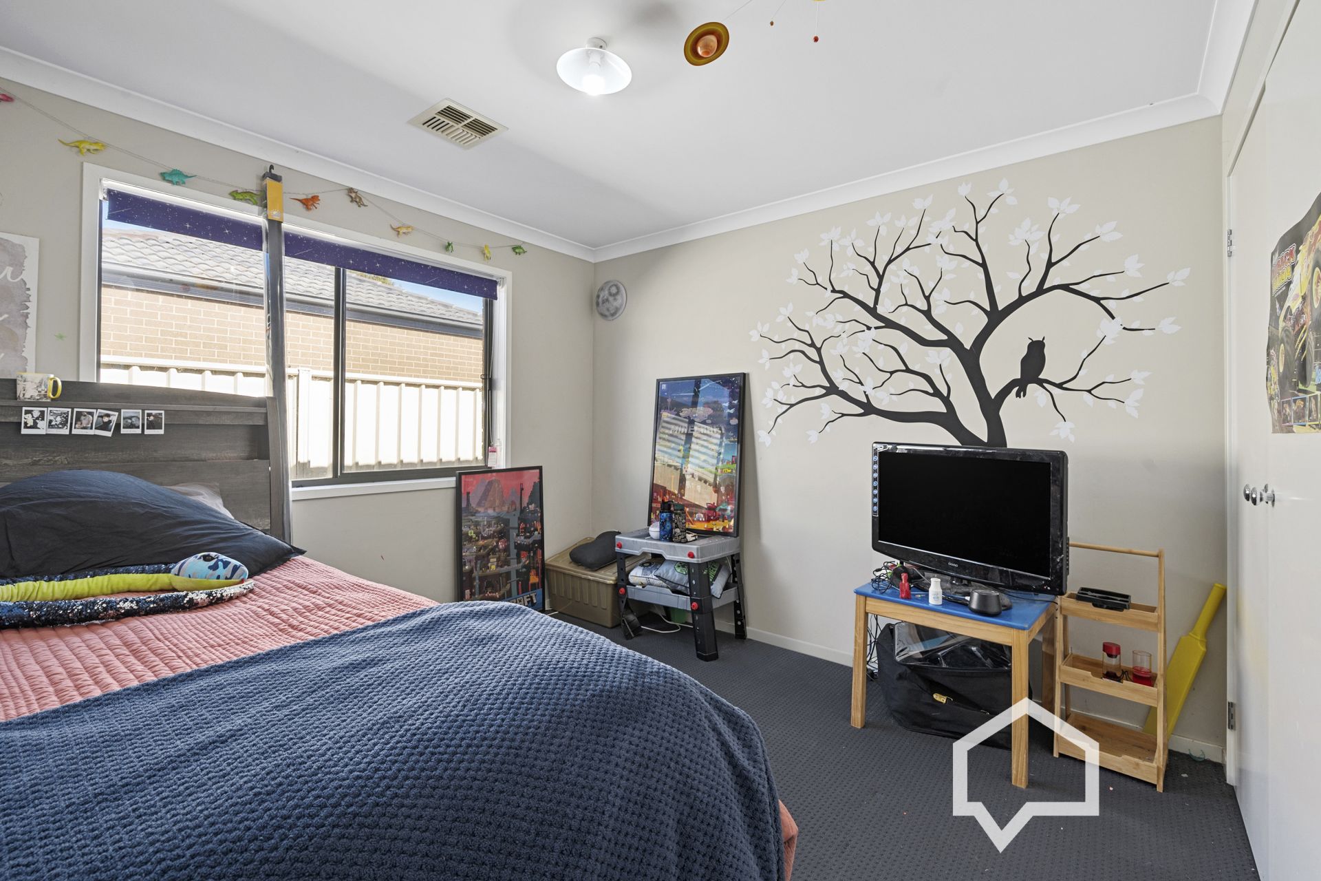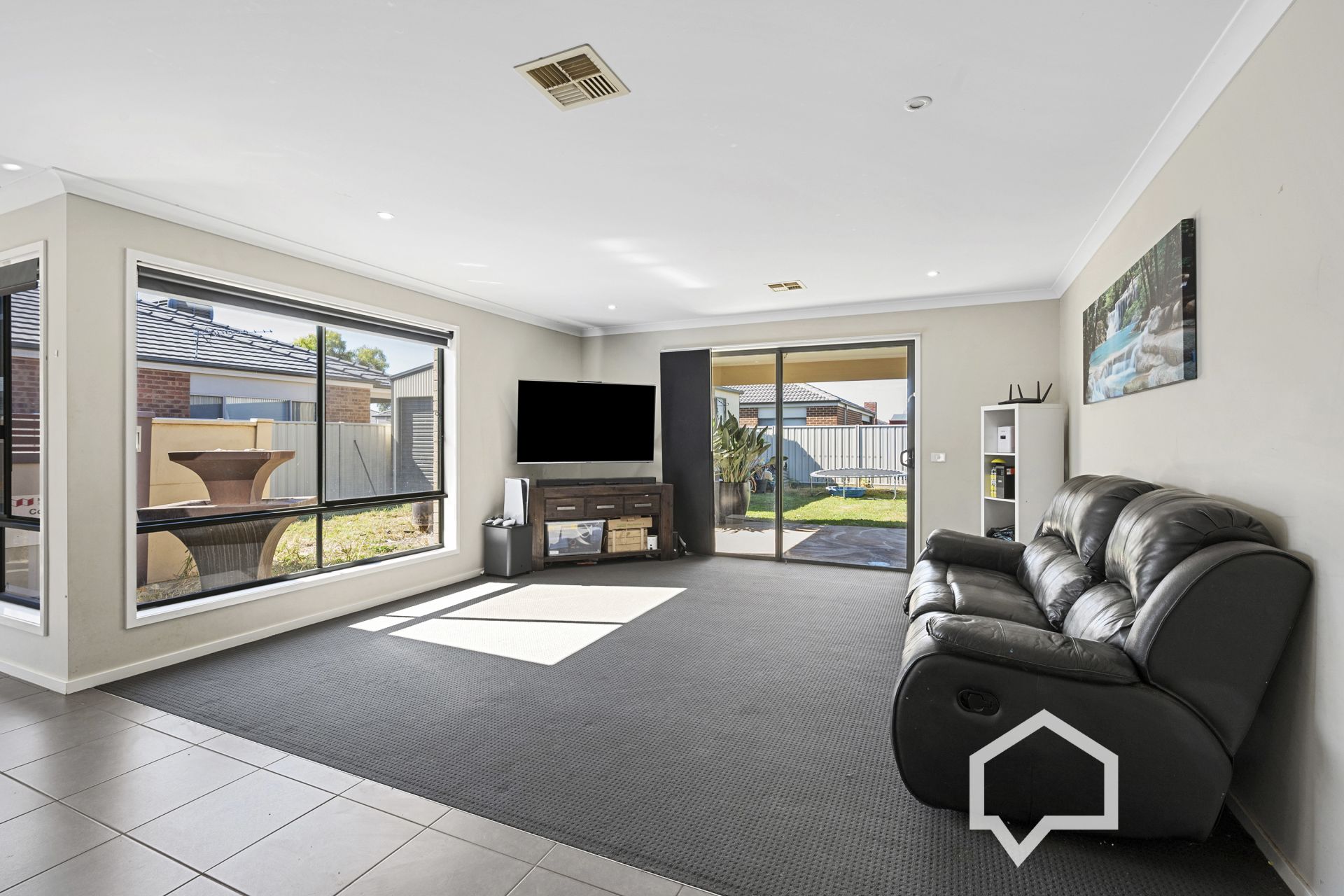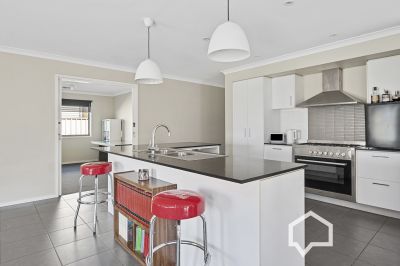 The brick-veneer, one-owner home is approximately ten years old. It features three good-sized bedrooms with robes (including a walk-in robe in the main bedroom), two bathrooms, a spacious North-facing open-plan kitchen, dining, and living area, and a versatile second living room for use as a home theatre, playroom, or study area, providing plenty of room for a family to live comfortably.