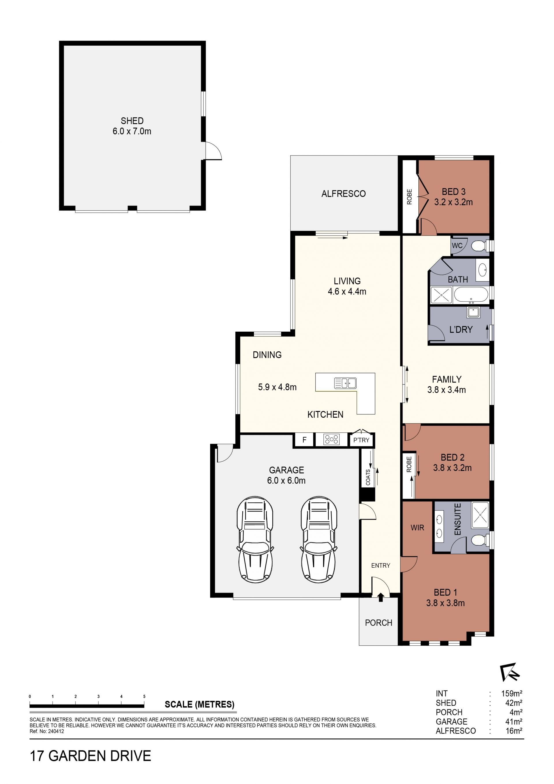 The home includes reverse-cycle ducted heating/cooling, quality floor tiles throughout the high-traffic areas, direct internal access from the double auto-door garage, and a 6m x 7m Colorbond shed with twin roller doors for a workshop or extra storage space.