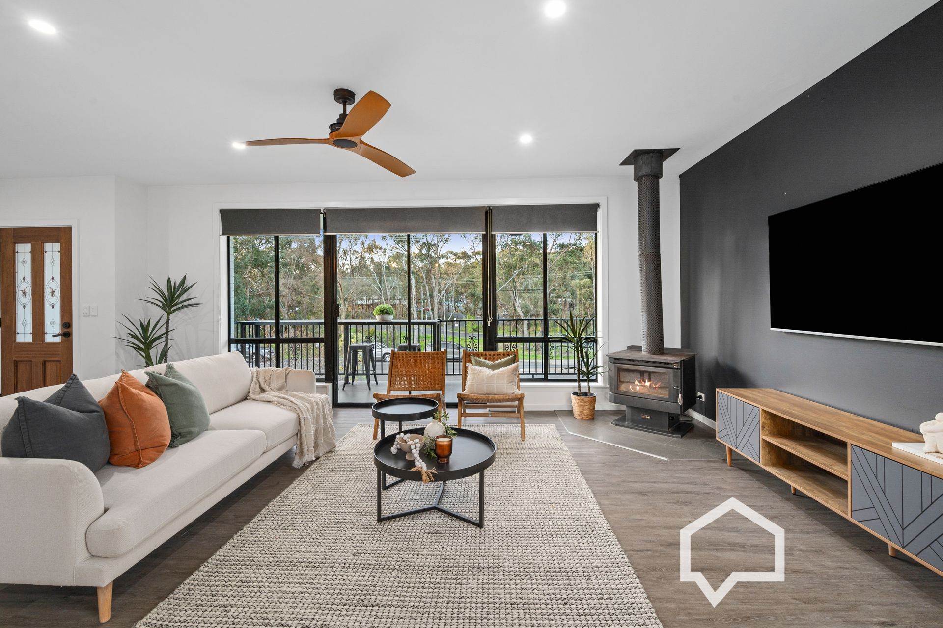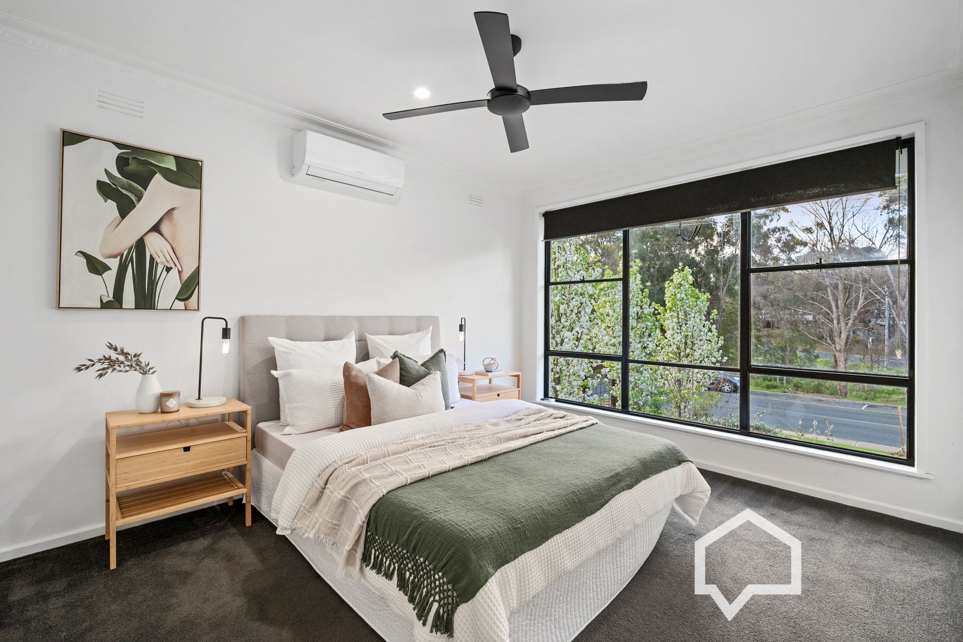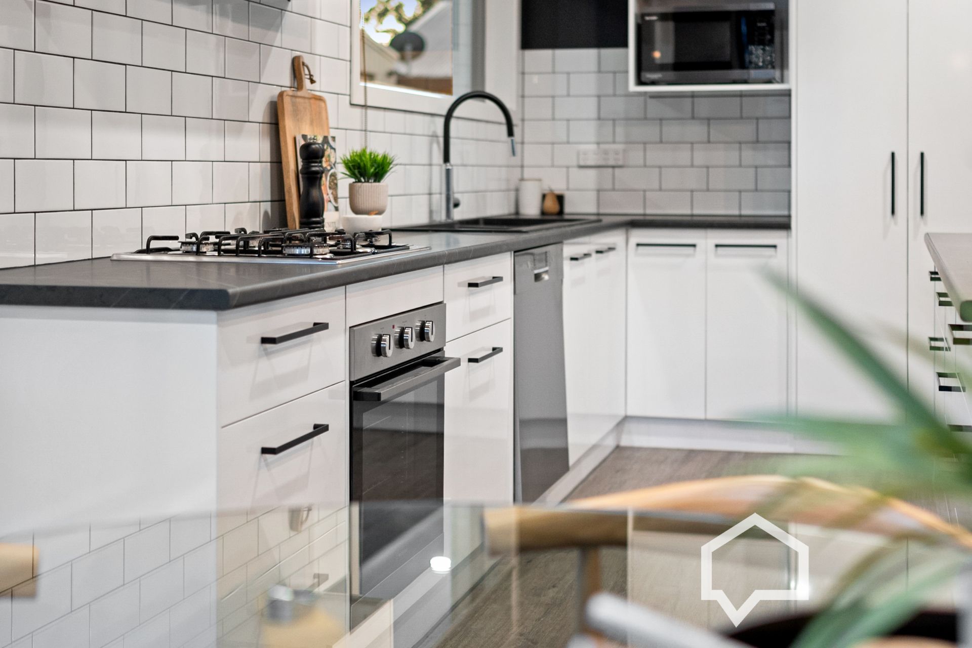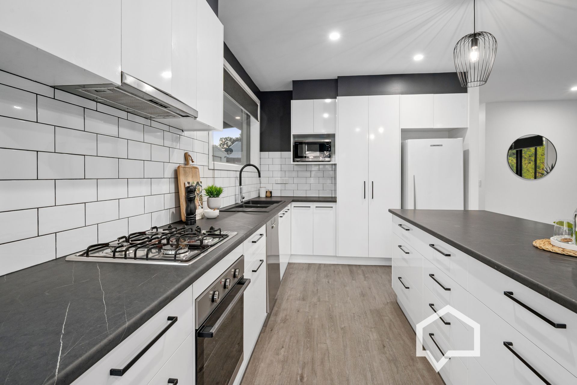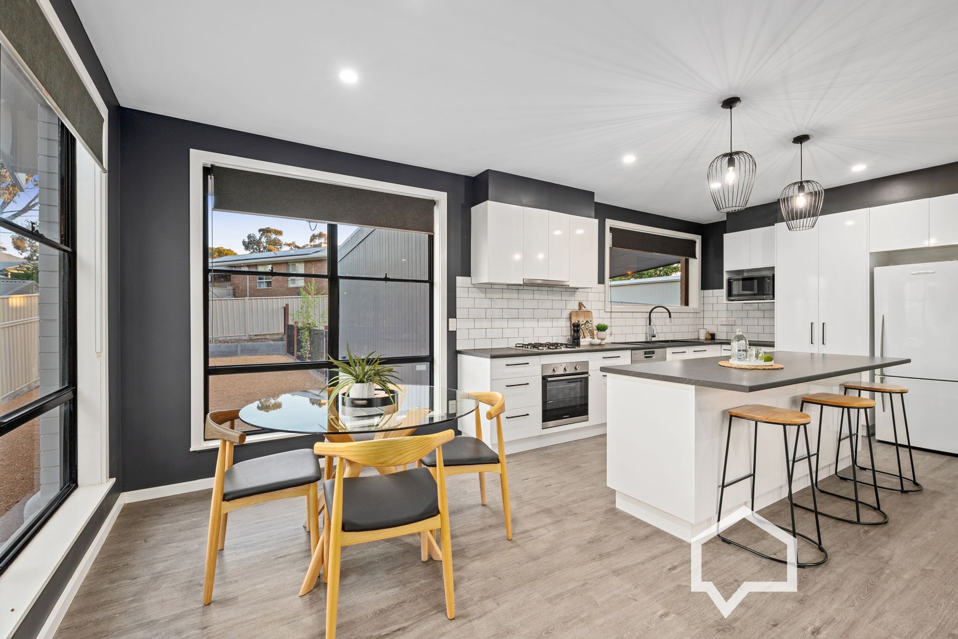 No detail was overlooked in the refurbishment. Everything old is new again, from the electrical wiring, plumbing, internal doors, interior/exterior paintwork, new carpets, vinyl planks, and window blinds to the coordinated black and white décor.