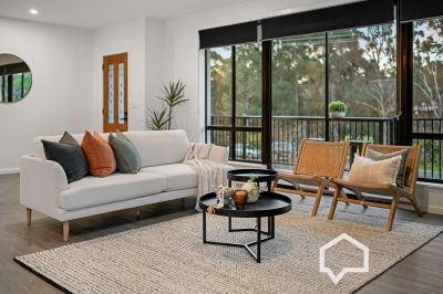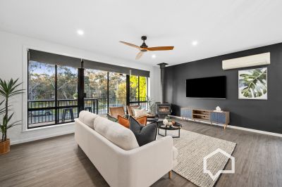 The reworked L-shaped lounge/dining and kitchen is now a roomy, light-filled, open plan hub. A big glass slider connects the living area to the elevated front patio, where you can take in the bushland views across the road with your morning coffee or afternoon drinks. In cooler weather, head for the dining area drenched in the warm morning sunshine.