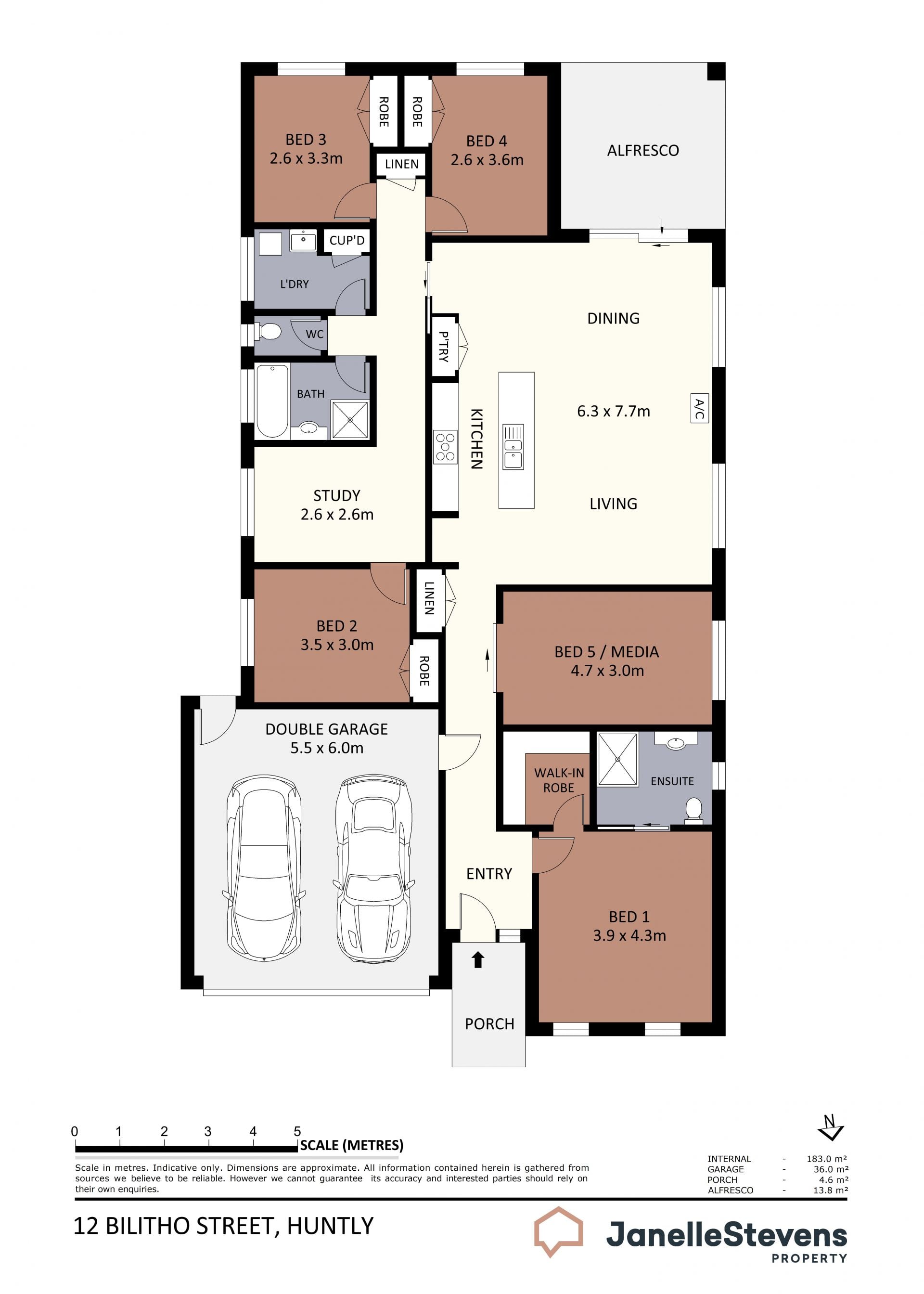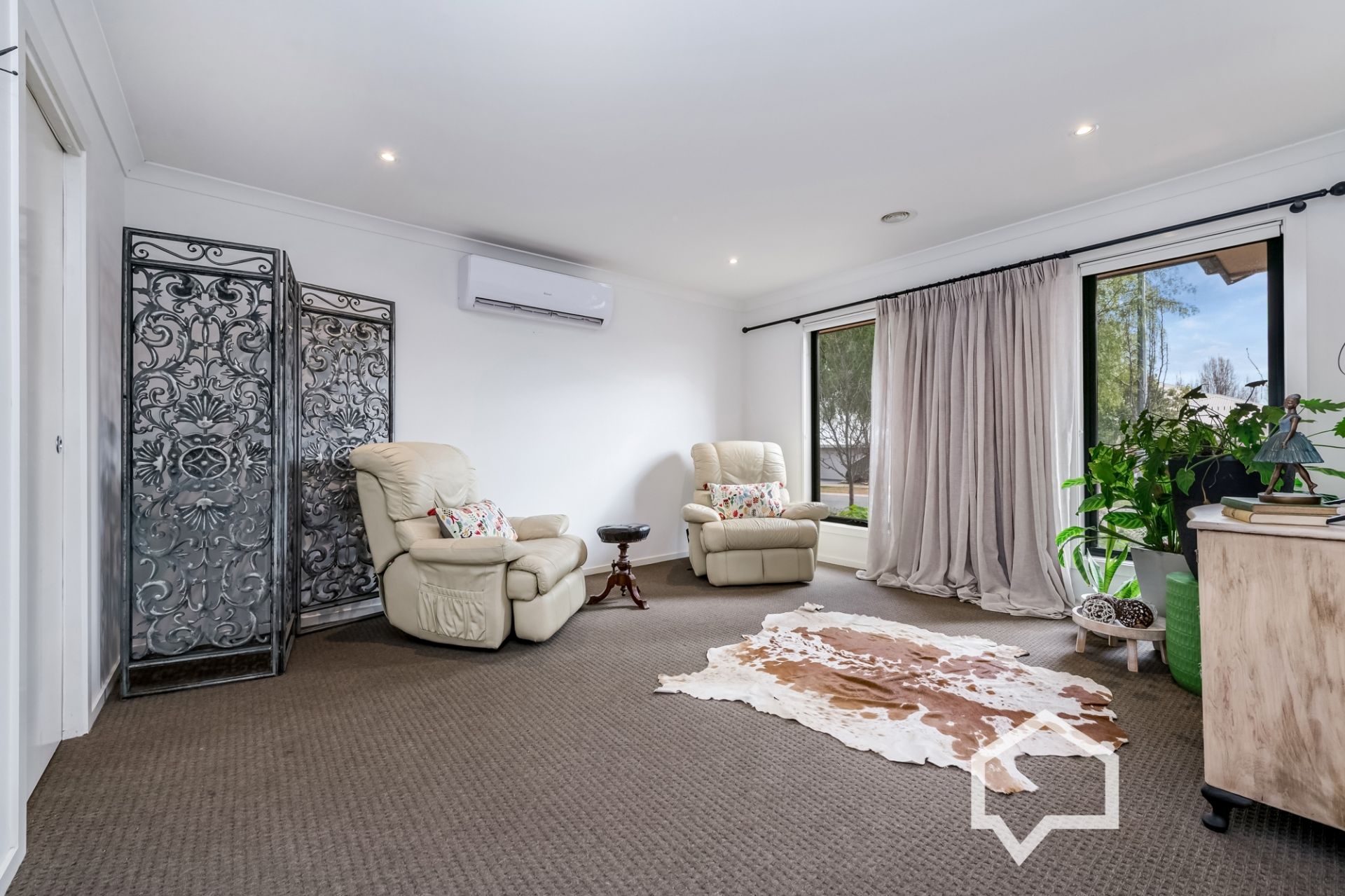 The adaptable floor plan provides multiple living options - configure the home to offer five bedrooms or opt for an additional living area, adapting seamlessly to your lifestyle. Year-round comfort is assured with ducted heating and two new split-system units, while solar panels contribute to energy efficiency.