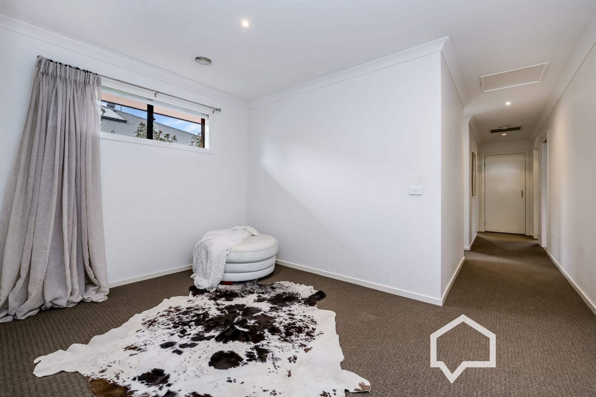The generous main bedroom includes a spacious walk-in robe and a private ensuite, ensuring a peaceful retreat. A separate rear hallway leads to three additional bedrooms, a dedicated study, and a contemporary family bathroom, offering flexibility and space.