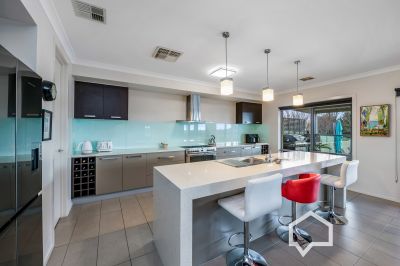 The open-plan living, dining and kitchen area is a true showstopper, framed by large sliding glass doors that spill out to a tiled alfresco with built-in open fireplace. The sparkling, solar-heated salt pool is the centrepiece of the backyard-ideal for summers filled with laughter.