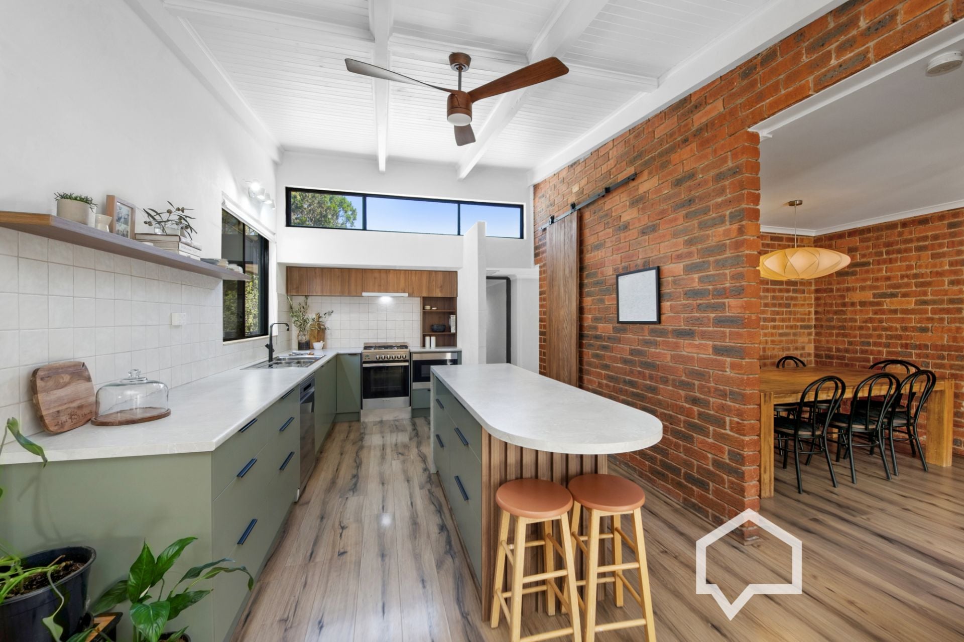 The kitchen sits at the centre of the home and is filled with natural light. Finished in soft, neutral tones, it's equipped with gas/electric cooking, dishwasher, double sink and a walk-in pantry, and connects effortlessly with the surrounding living and dining zones.