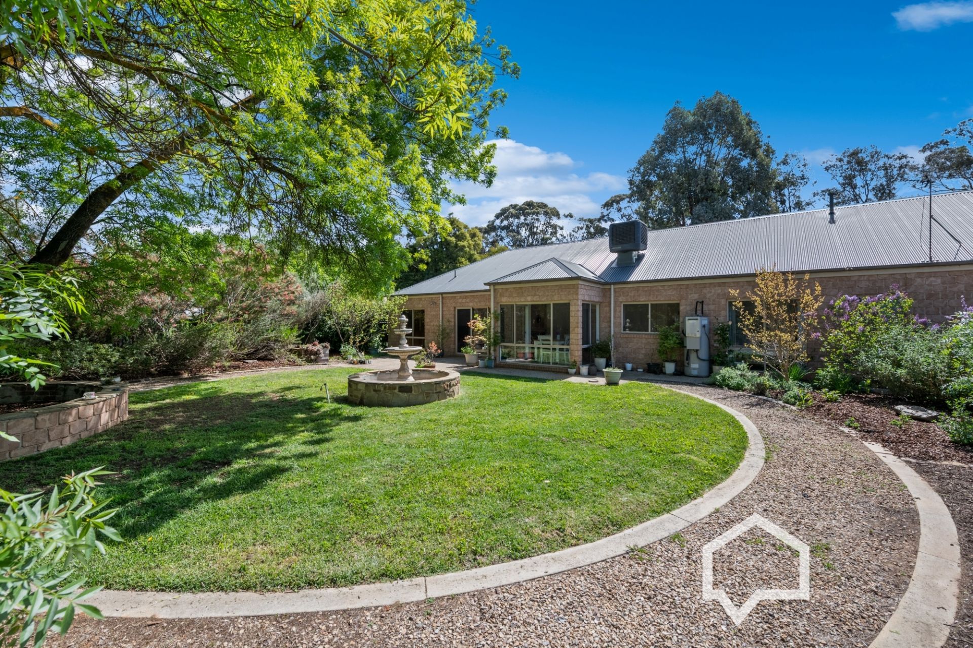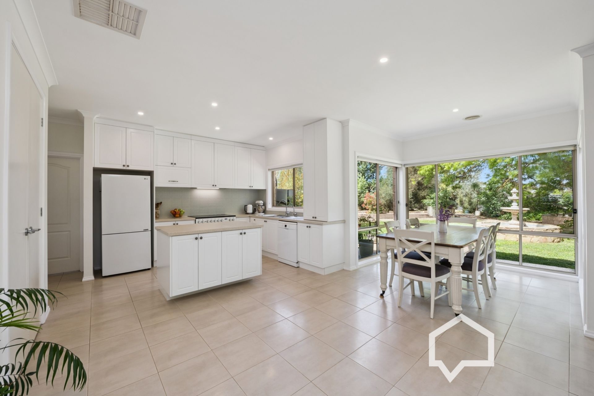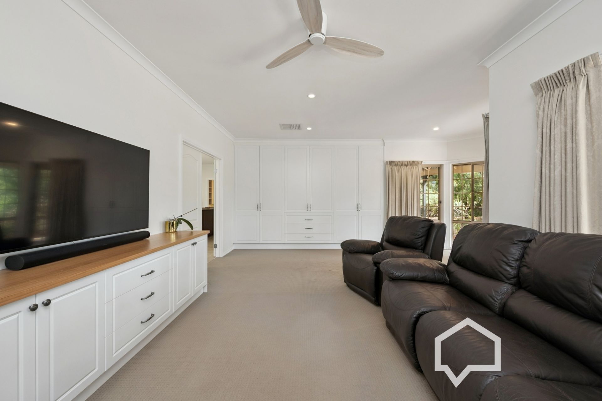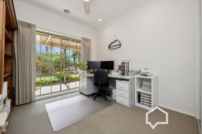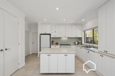 Inside, the main bedroom, off the tiled entry foyer, includes an ensuite and the luxury of his and hers walk-in robes. Younger family members (or guests) will enjoy their own separate wing with three bedrooms (BIRs), the main bathroom, laundry, and a separate toilet.