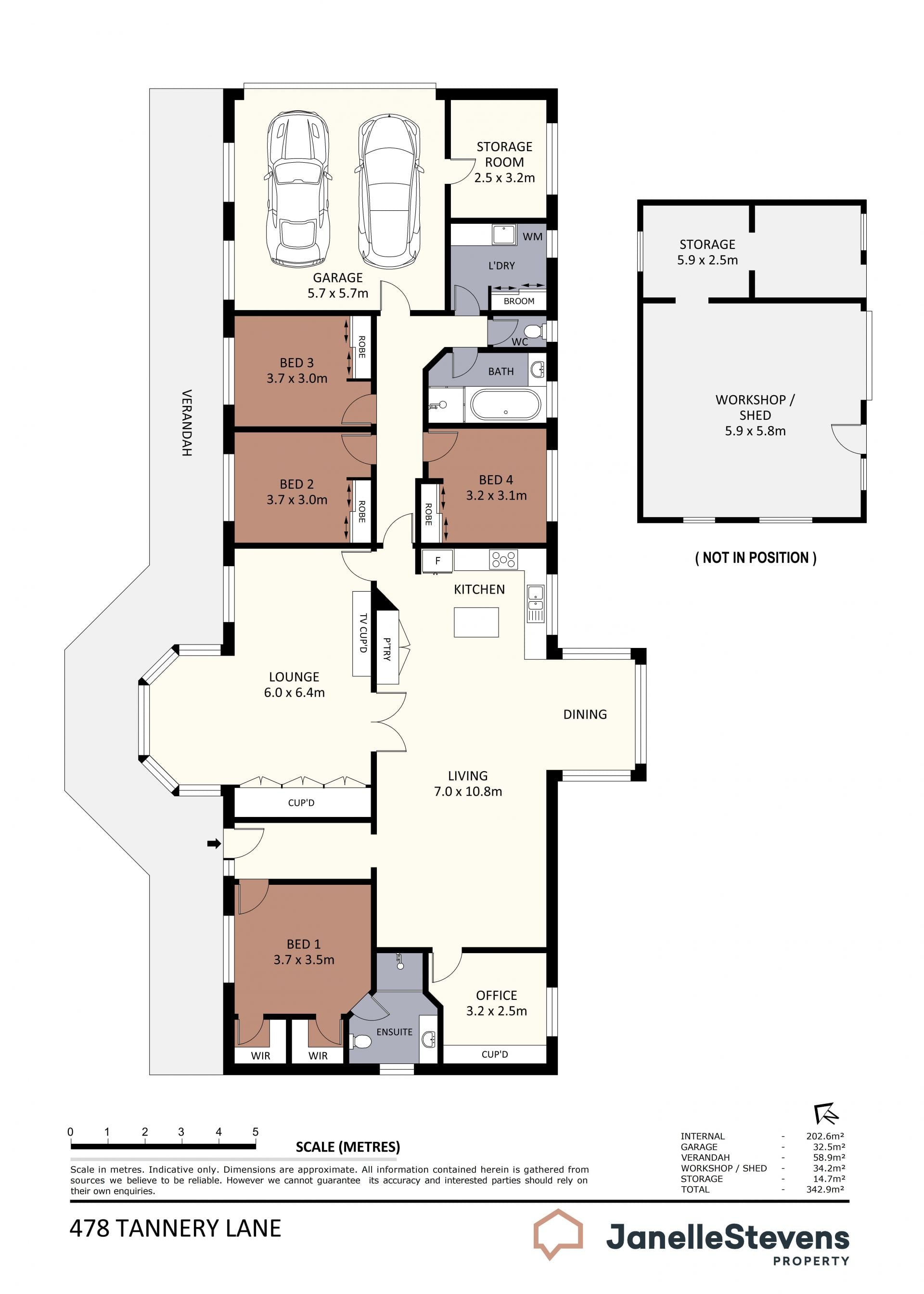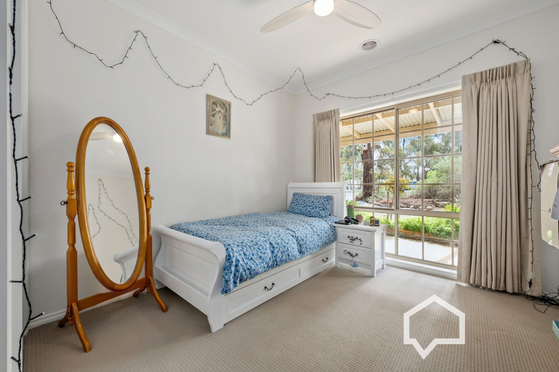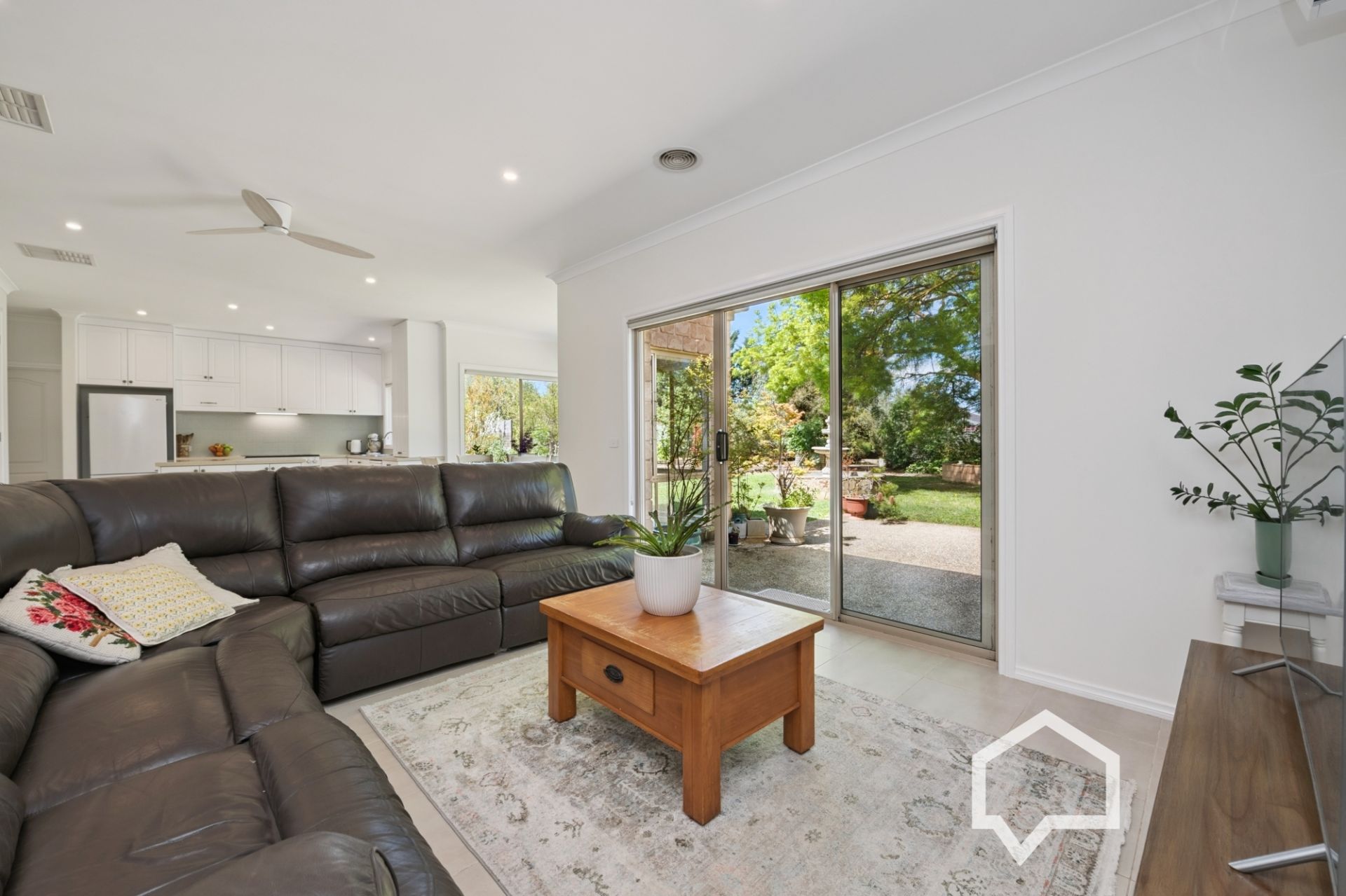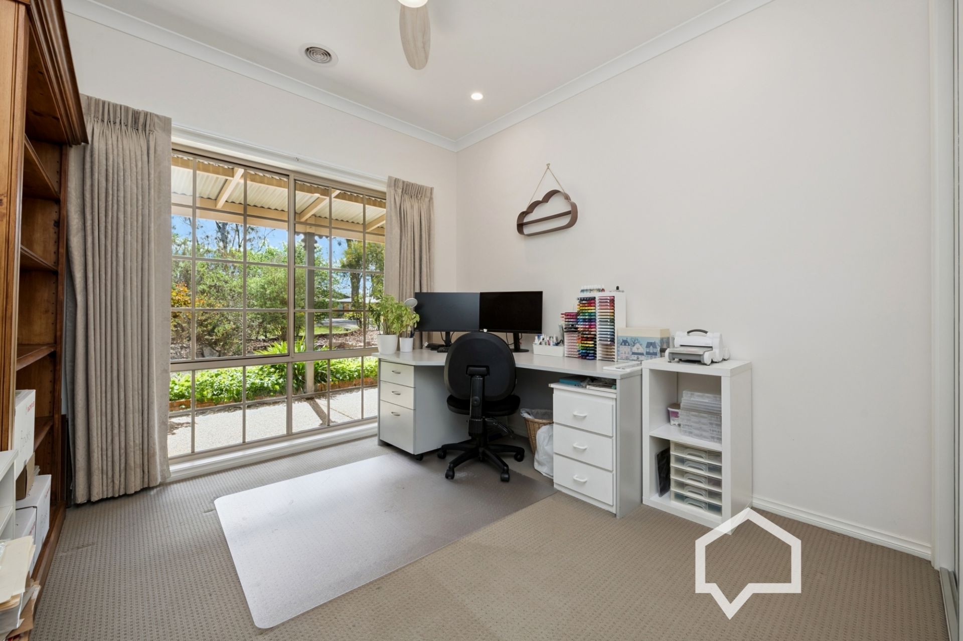 Inside, the main bedroom, off the tiled entry foyer, includes an ensuite and the luxury of his and hers walk-in robes. Younger family members (or guests) will enjoy their own separate wing with three bedrooms (BIRs), the main bathroom, laundry, and a separate toilet.