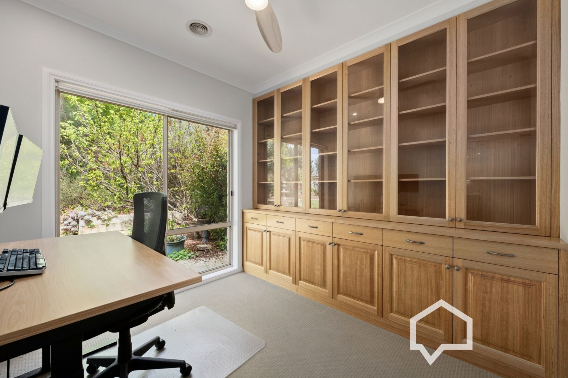Exceptional storage options include a wall of built-in cabinetry in the study and the lounge, with linen, under-bench and overhead cupboards in the laundry, and a store room off the double garage – enough to accommodate all the paraphernalia a family could ever need.